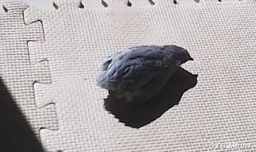 ヒメウズラの銀ちゃん、日向ぼっこを満喫していると...