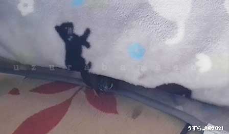 最初に見つけた時は毛布のすき間に完全に挟まって隠れてました