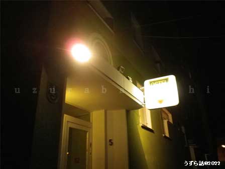 たどり着いた~この建物、外壁の色から可愛い(暗くて解らんw)